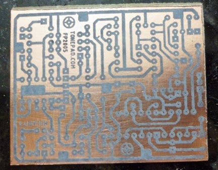 Edit: com a temperatura diminuída e maior pressão, consegui uma transferência boa também. Inclusive fiz uma placa grande, com quase 15 cm de comprimento, com mais facilidade do que usando temperatura no máximo. Mas o método do Sergio para retirar o papel também não deu certo.