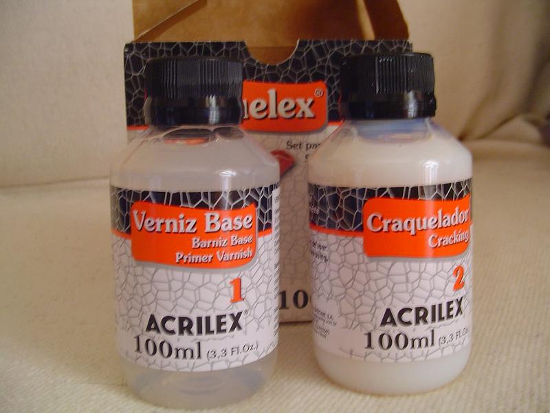 Para fazer o craquelado com os "kits" Acrilex ou similar, o ideal é usar pincel chato e macio (pelo de marta é excelente, mas custa caríssimo; pelo de boi ou outros tipos macios quebram bem o galho e custam muito mais barato), com largura adequada ao tamanho da área (para uma caixinha de pedal, uma trincha de 1/2" a 1" dá conta).
