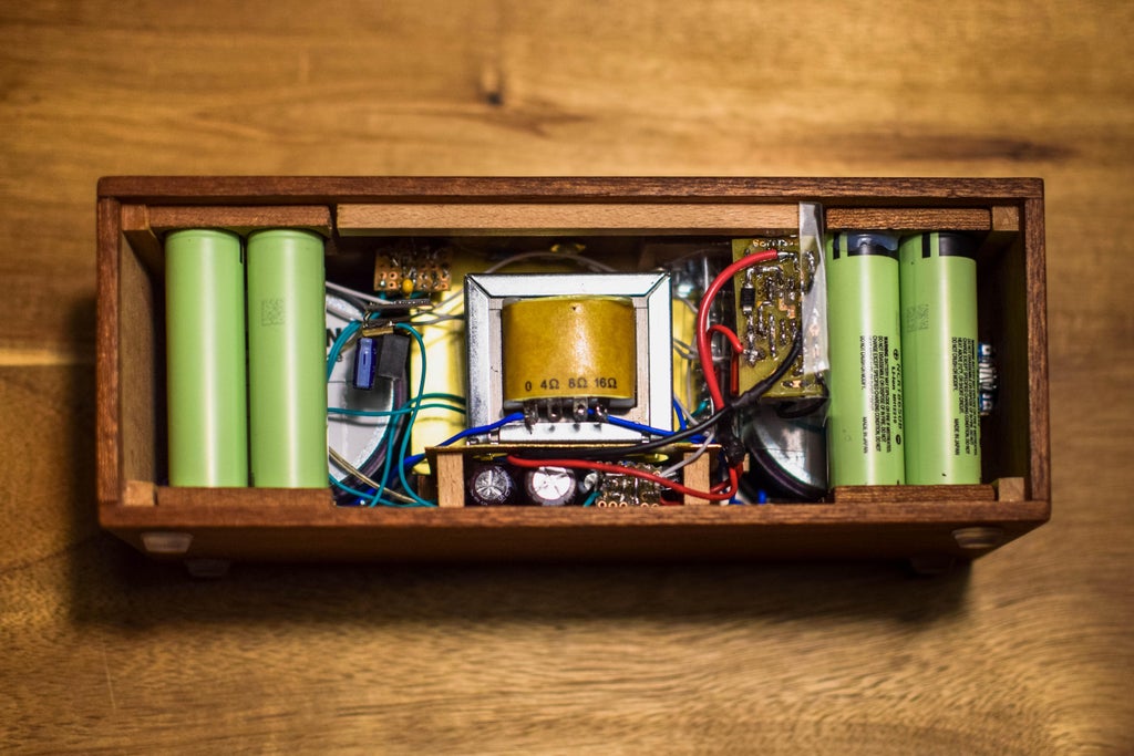 Um amplificador sem fio usando a 12au7 em "Push-pull", alimentado com baterias de Li-Ion