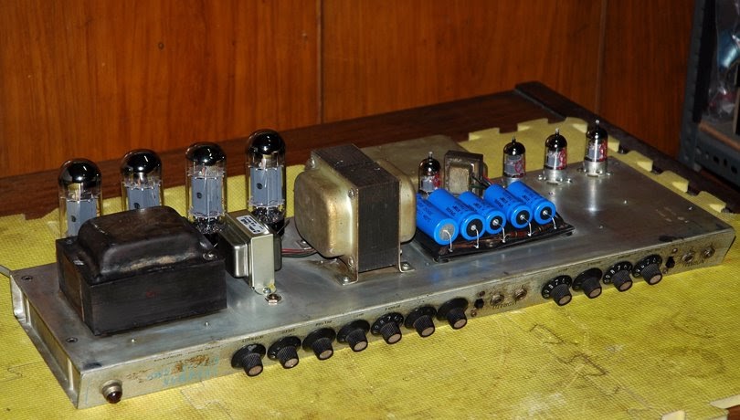 Obrigado, Rosset. Minha primeira montagem de amplificador foi um C386 também, mas não chegou nem perto do seu que está muito lindo mesmo, depois fiz mais dois solid state e finalmente comecei um valvulado de 5Watts. este eu não terminei, porque no meio do caminho apareceu este tremendão. Coincidentemente as peças que eu estava montando o valvulado de 5 watts entraram num rolo com uma caixa original deste tremendão...