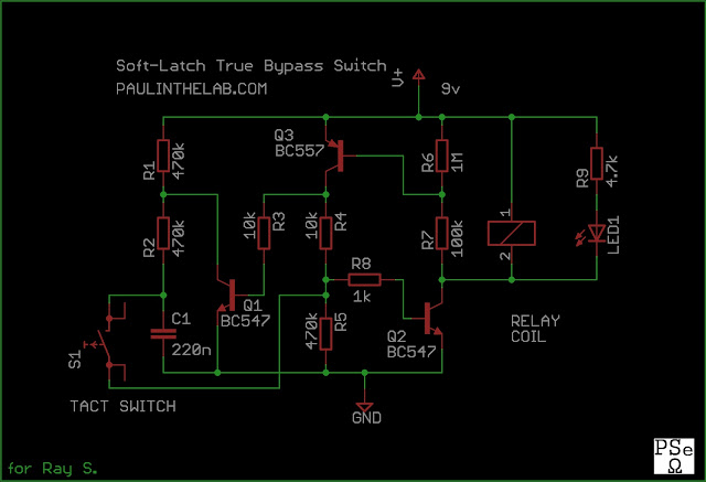 https://paulinthelab.blogspot.com.br/2013/04/soft-latch-true-bypass-relay-switch-for.html***